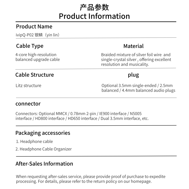 ivipQ-P02 “Silver Scales”4-core high-resolution balanced upgrade cable | Silver Foil & Single-Crystal Silver Hybrid Construction