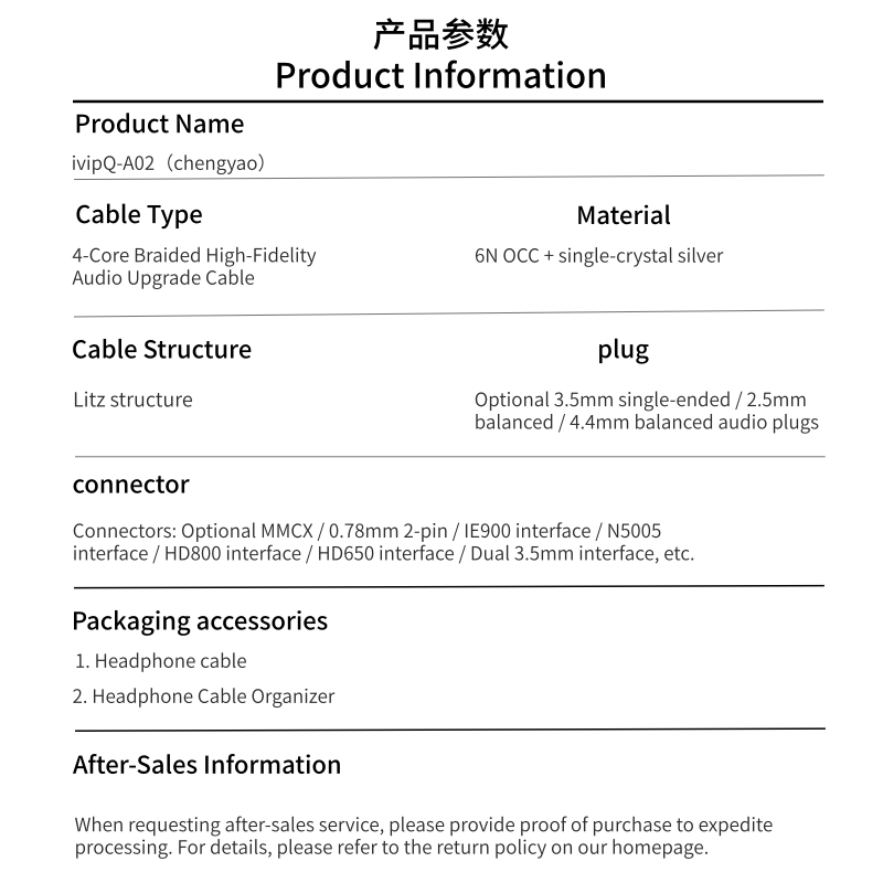 Home / ivipQ -A02 Single-Crystal Silver and OCC Braided Hi-Fi Audio Upgrade Cable