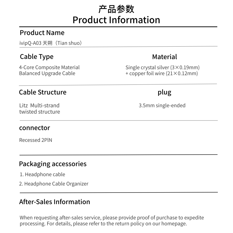ivipQ - A03 | 4-Core Composite Material Balanced Upgrade Cable
