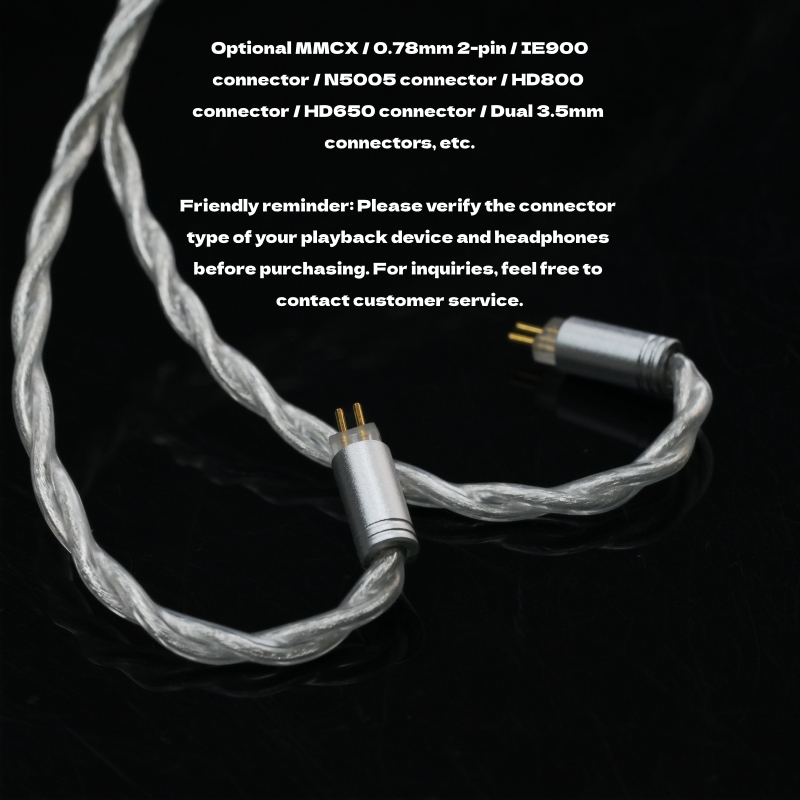 Connectors: Optional MMCX / 0.78mm 2PIN / IE900 interface / N5005 interface / HD800 interface / HD650 interface / dual 3.5mm interfaces, etc., widely compatible with various high-end over-ear headphones and in-ear headphones.